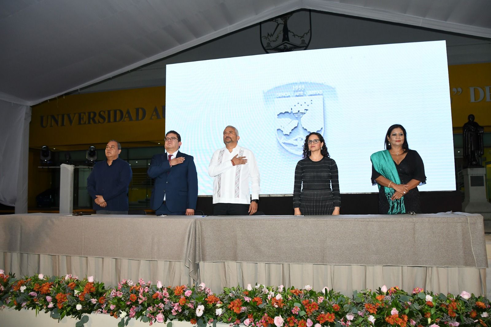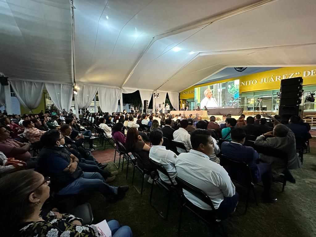 Ante la comunidad universitaria, autoridades de universidades hermanas, así como invitadas e invitados especiales, reunidos en la Explanada de Rectoría, Carreño López llamó a continuar por la ruta de la excelencia académica; para ello, el esfuerzo debe ser permanente, labremos juntos el presente y el futuro, fue el llamado en esta histórica fecha.