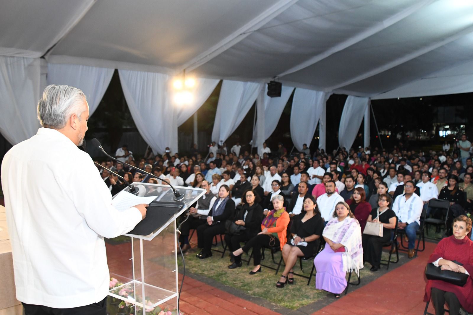 Oaxaca, Oax. 16 de noviembre de 2023.-“Los convoco a unirnos en una sola voz, a desafiar los límites, superándonos a nosotros mismos, llevando en el pecho nuestra identidad y pertenencia. Es nuestro tiempo, es tiempo de la UABJO, inmensamente UABJO ¡Muchas felicidades por estos primeros cincuenta años de nuestra Ciudad Universitaria!” , expresó visiblemente emocionado el rector de la UABJO, C.P. Cristian Eder Carreño López, en la declaratoria del Cincuentenario del campus.