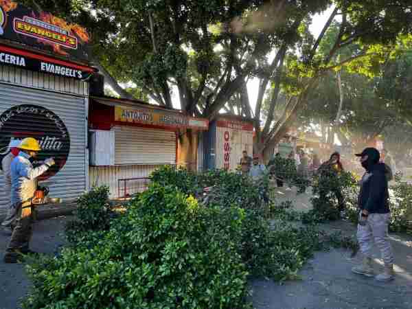 «Gracias a la coordinación entre los comerciantes de la zona, el Heroico Cuerpo de Bomberos del Estado y la Secretaría de Servicios Vecinales de Oaxaca de Juárez, iniciamos los trabajos de poda de árboles en este camellón», destacó el presidente Ray Chagoya.