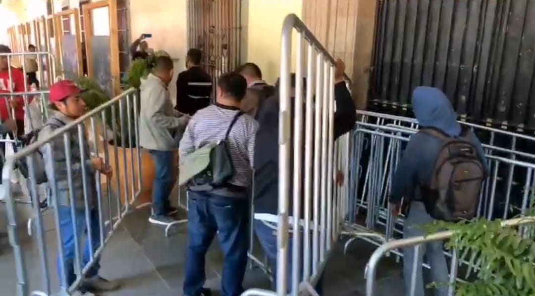 Los pozoleros encabezan disturbios en el zócalo capitalino, desordenando el templete y vandalizando muebles y vallas oficiales.