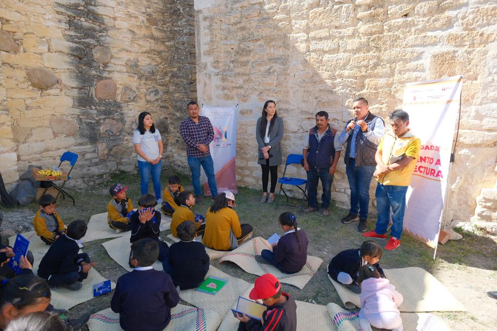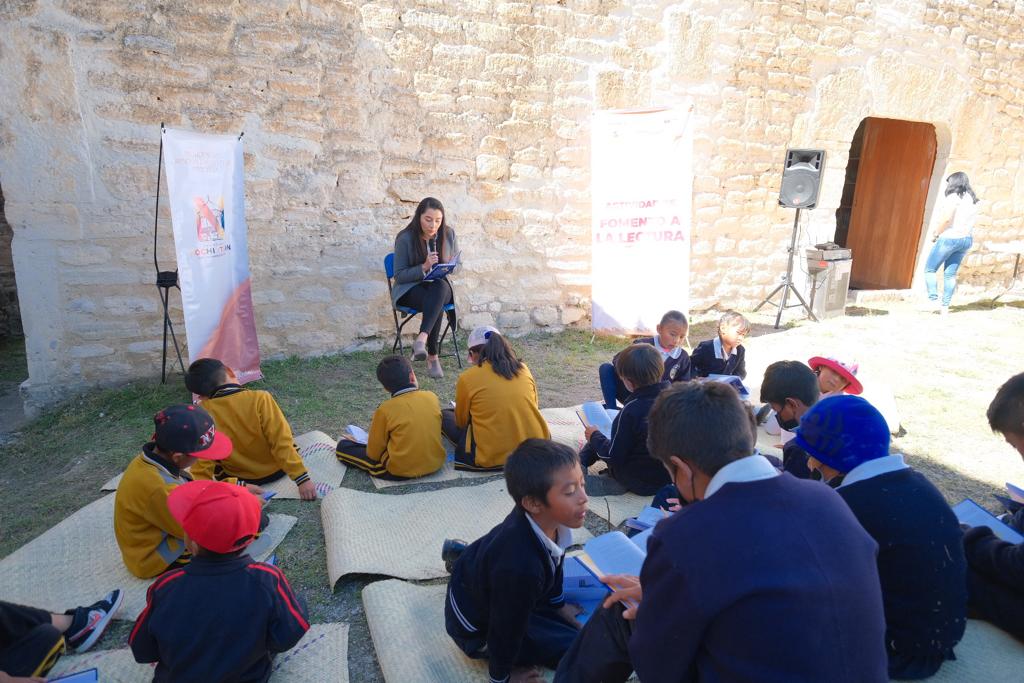 El círculo de lectura se realizó al exterior de una biblioteca de la comunidad y estuvo a cargo de la subsecretaria de Egresos, Contabilidad y Tesorería Andrea Acevedo Merlín, quien acudió en representación del titular de la de la Secretaría Finanzas (Sefin), Farid Acevedo López.