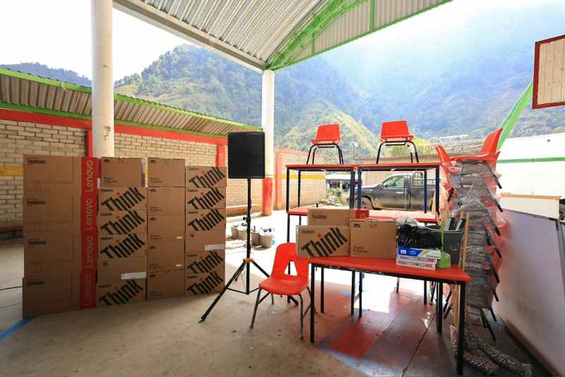 Durante este encuentro con la población, a través del Instituto Estatal de Educación Pública de Oaxaca (IEEPO), el Mandatario estatal entregó a cada una de las tres escuelas de la agencia dos computadoras, un proyector y material deportivo, de aseo y oficina; que complementa el equipamiento con lotes de mobiliario, sillas y mesas para docentes y pizarrones; dado anteriormente.